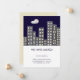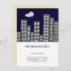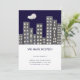 Aquarelle en mouvement faire-part avec une illustration un ciel de nuit immeubles ville. Personnalisez le texte avec votre propre. Illustré et dessiné par Patricia Alvarez.