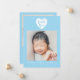 Cette carte élégante et élégante de faire-part de naissance photo recto verso comprend 2 photos (avant et arrière) de votre nouveau-né, un texte personnalisé qui peut être personnalisé, et un coeur blanc avec un texte typographique à l'intérieur qui dit "merci" en haut sur un arrière - plan bleu. Customisez ce produit en ajoutant le nom de votre nouveau-né, les photos, l'état de naissance et le nom des parents.