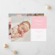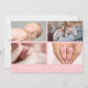 Pink photo collage carte de faire-part de naissance fille pour présenter votre belle petite fille. Le devant comprend une photo de bébé avec typographie en écriture blanche pour le nom de votre petit avec texte rose moderne pour les statistiques de naissance. Le verso comporte quatre autres photos de bébé et comprend un message en blanc avec le ou les noms des parents sur un arrière - plan rose. Conçu par Thisisnotme©