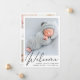 Une faire-part de naissance simple et élégante avec la photo de votre nouveau-né superposée avec "Bienvenue" dans un script élégant. Ajoutez le nom, la date de naissance et les statistiques de naissance de votre bébé. Au verso, ajoutez 3 autres photos et un message personnalisé.