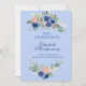 Le magnifique faire-part de graduation de style Boho présente des graphiques d'aquarelle florale peints à la main dans des tons riches de bleu marine et poussiéreux, rose rousse, botanique blanc argenté et respiration blanche pour bébé. Personnalisez-le avec l'année de l'obtention du diplôme, le nom du diplômé et l'école dont ils ont obtenu le diplôme. Vous pouvez également inclure le diplôme qu'ils ont reçu. L'Arrière - plan est bleu ciel poussiéreux. L'envers a un motif de feuilles bleus poussiéreux contre un arrière - plan rose roux.
