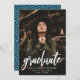 Faire-part de graduation simple avec la photo du diplômé avec "diplômé" dans une police de texte blanc tendance. Personnalisez le devant du faire-part de remise de diplômes en y ajoutant le nom du diplômé, le nom de l'école et l'année de remise de diplômes. Le faire-part s'inverse pour afficher un motif de saupoudrages blancs avec un arrière - plan bleu foncé ou la couleur de votre choix.