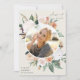 L'élégant faire-part de graduation de photo florale comprend une photo ronde encadrée de fleurs d'aquarelle et de feuillage dans des tons de pêche inspirés du désert de sauge, blanc, ivoire et vert sauge. Personnalisez avec le nom de votre diplômé, l'année de classe et l'école. Ajoutez un message personnel à l'arrière, ainsi qu'une photo supplémentaire.