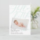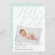 Bonjour petit un faire-part de naissance photo moderne. Elégant texte de script, photo imprimée moderne. Un aqua et un design blanc épurés, convenant à un garçon ou une fille.