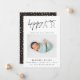 La carte faire-part de naissance moderne et élégante du Nouvel An. Le design comprend une photo du bébé, joyeux script de la nouvelle année en lettres modernes, statistiques de naissance, nom, votre message et motif de pois doré festif au dos de la carte. Une façon parfaite d'annoncer la naissance de votre bébé et de souhaiter à tous une Bonne Année!