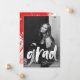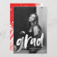 Célébrez la réussite de votre diplômé avec ce faire-part moderne de graduation, avec leur photo avec "grad" élégamment affichée dans une superposition de script de brosse blanche. Customisez le devant avec le nom du diplômé, le nom de l’école et l’année de fin d’études pour une touche personnelle. Le dos de la carte présente des touches rouges audacieuses, ajoutant une touche vibrante et artistique. Parfait pour les diplômés du secondaire et du collège, cet élégant faire-part de diplôme de photographie est une façon mémorable de partager les nouvelles passionnantes avec la famille et les amis.