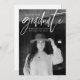 Carte de faire-part moderne de graduation avec la photo préférée de votre diplômé sur le devant avec "Graduate" dans une écriture manuscrite blanche. Personnalisez le devant du faire-part en ajoutant le nom du diplômé, le nom de l'école et l'année de diplôme. La faire-part tendance de graduation inverse pour afficher 3 photos supplémentaires avec de l'espace pour le texte tels que les plans futurs, les détails de graduation, les détails de la fête, etc. Le faire-part de diplôme de 4 photos est parfait pour les diplômés du secondaire et du collège.