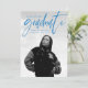 Carte de faire-part moderne de graduation avec la photo préférée de votre diplômé sur le devant avec "Graduate" dans une écriture manuscrite bleue. Personnalisez le devant du faire-part en ajoutant le nom du diplômé, le nom de l'école et l'année de diplôme. La faire-part tendance de graduation inverse pour afficher 3 photos supplémentaires avec de l'espace pour le texte tels que les plans futurs, les détails de graduation, les détails de la fête, etc. Le faire-part de diplôme de 4 photos est parfait pour les diplômés du secondaire et du collège.