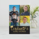 Faire-part de graduation moderne avec un titre GRADUATE en or lettré à la main avec un capuchon de graduation en feuille d'or faux métallique et année de classe avec un total de 4 images (un collage photo de 3 sur le devant et 1 sur le dos) dans votre choix de couleur arrière - plan (montré en noir). L'arrière offre un champ de texte optionnel pour des informations sur votre diplômé (réalisations et/ou plans futurs). ASSISTANCE : Pour obtenir de l'aide sur la modification ou la personnalisation de la conception, le changement de couleur, le transfert de la conception vers un autre produit ou si vous souhaitez coordonner des éléments, contactez le concepteur AVANT DE COMMANDER via l'onglet MESSAGE Conversation Zazzle ou envoyez un courriel à makeitaboutyoustore@gmail.com.