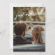 Une Faire-part Elopement contemporaine et moderne avec un peu de calligraphie de style brosse moderne pour "juste marié" (cet élément de texte peut être changé en n'importe quelle autre couleur !) et vos photos mariages préférées sur le devant comme sur le dos. Personnalisez le dos de cette carte Faire-part Mariage avec votre propre message personnel.