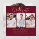 Cette carte élégante et chic de graduation peut être personnalisée en lettrage doré sur un arrière - plan bordeaux avec vos 4 photos spéciales grad. Conçu par Thisisnotme©