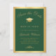 Envoyez à votre famille et à vos amis une élégante remise de diplômes, enregistrez l'annonce de la date mettant en vedette un arrière - plan vert avec de la calligraphie en or de fuax et un casquette en or bordé d'un cadre doré. Personnalisez avec vos détails de graduation. Conçu par Susan Coffey.