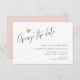 Petite carte "changer la date" avec un coeur d'or simple et moderne et une police de calligraphie de script élégante, en noir et blanc, avec une couleur solide modifiable au dos (cliquez sur "customiser plus loin" pour utiliser l'éditeur de modèle pour choisir une nouvelle couleur ou ajouter du texte).