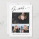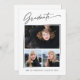 Trois cartes photo, tendance, modernes et élégantes de faire-part de graduation, avec des éléments de design de texte moderne avec script d'encre de calligraphie. Les photos des diplômés sur le devant de la carte sont soigneusement mises en évidence avec un dégradé délicat et minimaliste. Le dos de la carte offre des espaces de texte personnalisés pour des informations sur votre diplôme ou peut être effacé si vous souhaitez écrire un message à la main. Noir et blanc ou customiser facilement l'arrière - plan pour correspondre à la couleur primaire de votre école ou à n'importe quelle couleur de votre choix. Parfait pour les étudiants de niveau secondaire, collégial et universitaire.