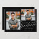 Calligraphie moderne Script 3 Photo Graduation Faire-part comprend deux photos sur le devant, ainsi que de la place supplémentaire pour le texte sur le dos.
