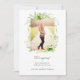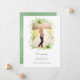 Carte photo de grossesse en forêt sauvage avec fougères, fleurs sauvages et fraises et arrière - plan de lavage à l'eau verte sauge. Une photo en forme de portrait est conseillée.
