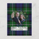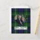Élégante carte postale de sauvegarde de date de mariage avec photo, réalisée dans le traditionnel vert Forbes et le tartan bleu. Une découpe en forme de cœur pour votre photographie, au milieu du motif à carreaux, avec une plaque en métal argenté en dessous et un texte en vert. Tout le texte, sur la plaque avant et au verso de la carte, est entièrement personnalisable pour dire ce que vous voulez.