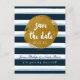 Carte postale à conserver précisant la date avec rayures bleues et feuille dorée. Articles assortis disponibles.