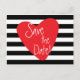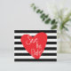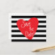 Carte postale cœeur rouge blanc noir rayé. Personnalisez avec n'importe quel texte pour n'importe quel événement.
