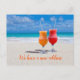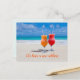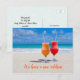 Deux verres sur du sable de plage, cartes postales d'annonce d'une nouvelle adresse. Un moyen abordable et amusant de dire à tout le monde que vous avez déménagé à la plage ! Boissons tropicales glacées dans des verres à pied avec des pailles posées sur le sable avec une mer turquoise en arrière-plan. La mention "Nous avons une nouvelle adresse" en bas peut être modifiée. Au verso, incluez les noms et les informations de nouvelle adresse. L'adresse de chaque destinataire peut être ajoutée une par une, ou supprimer le texte exemple et écrire les adresses à la main par la suite.