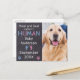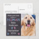 Félicitations ! Laissez votre meilleur chien et nouveau chien de garde nouvellement nommé annoncer votre grossesse et la nouvelle de son nouvel ami avec cette adorable carte d'annonce de grossesse pour chien. « Maman et Papa m'offrent un Humain... Bébé Nom de Famille … Votre Mois/Date 20xx. Personnalisez le verso avec votre message ou supprimez pour écrire à la main. Envoyez aux membres de la famille et aux amis pour l'annonce de grossesse la plus mignonne. COPYRIGHT © 2020 Judy Burrows, Black Dog Art - Tous droits réservés. Carte postale d'annonce de grossesse Chien Bébé.