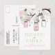Carte postale d'annonce de mariage à conserver avec pots Mason roses, verts et bleus et fleurs