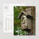 Jolie photo d'un oiseau debout à l'extérieur de sa maison. Nous avons déménagé en texte blanc en bas de la carte postale. Personnalisez tout le texte au recto et au verso selon vos besoins.