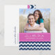 Cartes postales d'annonce de mariage personnalisées avec photo dans un élégant et contemporain bleu marine foncé, rose vif fuchsia et blanc avec un motif zigzag chevron amusant et moderne, élégant et entièrement personnalisable avec vos détails de mariage et votre propre photo. Également disponible dans de nombreux autres produits pour la fête de mariage.