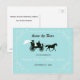 Cartes postales de mariage de conte de fées avec une mariée et un marié se promenant dans un carrosse tiré par des chevaux. Cadre orné sur fond bleu œuf de robin. Parfait pour votre mariage de princesse de conte de fées ! Également disponible dans d'autres couleurs. Veuillez contacter pmcustomweddings@hotmail.com pour des couleurs personnalisées. Correspond à notre ensemble de mariage de conte de fées avec cheval et carrosse.