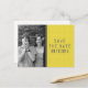 Carte postale de sauvegarde de date de photo de code binaire amusante et geek en jaune avec un arrière-plan de code binaire simple et un modèle de photo. Ce design excentrique est parfait pour le couple nerd qui annonce son mariage ! Facile à personnaliser, remplacez simplement la photo par la vôtre et ajoutez vos détails de mariage. Cliquez sur "Personnaliser" pour trouver plus d'options de personnalisation.