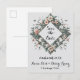 Cette invitation de carte postale spéciale présente un élégant design floral, magnifiquement encadré dans une forme de diamant délicate. Les détails des fleurs et le style intemporel donnent le ton parfait pour une célébration de mariage mémorable et sophistiquée.