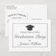 Carte postale d'invitation pour une fête de remise de diplôme. Design noir et blanc moderne et minimaliste élégant avec un cadre fin.