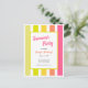 Des rayures vives pour une carte postale d'invitation à une fête d'été énergique ! Facile à personnaliser, cette carte apporte instantanément une touche de vibrations estivales lumineuses dans l'air. Produits assortis disponibles dans ma boutique. N'hésitez pas à me contacter pour personnaliser celle-ci ou d'autres conceptions dans ma boutique !