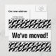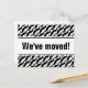 Cartes postales Hipster en mouvement avec impression de moustache noire. Texte de déplacement personnalisé ; Nous avons déménagé ! Ajoutez votre nouvelle adresse à l'arrière. Cartes maison neuves modernes pour la maison et les affaires.