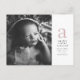 Une introduction simple pour votre nouveau petit avec une seule photo, une grande initiale rose, une chambre pour les statistiques et le nom des parents. Le dos a de la place pour une deuxième photo et un message personnalisé. Vous pouvez modifier les couleurs du texte en cliquant sur le bouton "personnaliser".