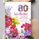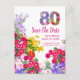 Célébrez un événement marquant avec cette carte « Save the Date » vibrante pour les 80 ans, ornée d'un « 80 » fleuri coloré et d'une bordure de jardin lumineuse.