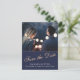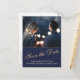 Carte postale moderne et élégante de mariage "save the date" de couleur bleu minuit avec une photo. Le texte est dans un script TENDANCE et se superpose à la photo sur le devant. Le fond est bleu minuit foncé. Vous pouvez facilement personnaliser tout le texte sur le devant et le verso de la carte - le personnaliser avec le nom de la mariée, le nom du marié, la date, l'heure, le lieu, et modifier ou effacer tout texte. Cette carte postale "save the date" va avec d'autres articles de la collection de mariage Rose jaune bleu minuit - vous pouvez les trouver ci-dessous cette invitation.