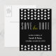 Carte postale tendance pour annoncer la date à retenir avec un motif géométrique moderne et accent jaune. Cette carte correspond à la papeterie de mariage "triangles noirs et blancs". Trouvez plus d'articles dans notre boutique !