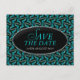 Cartes postales de sauvegarde de date de mariage ou de fiançailles au motif funky sarcelle et noir, simples et élégantes. Cartes de mariage abordables sans compromettre le style et le design.