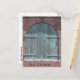 Porte d'entrepôt patinée en brique rouge. Texte devant la carte "New Location ...". Personnalisez à l'arrière avec le nom, l'adresse et le numéro de téléphone de l'entreprise.