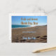 Cartes uniques pour annoncer une date avec un thème de plage avec une citation, 'notre histoire commence'. Caractéristiques un beau fond de plage.