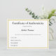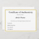 Faire-part Certificat d'authenticité personnalisable pour l'a