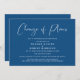 Moderne et minimaliste changement de plans de mariage, annonce de report ou d'annulation avec une ambiance joyeuse en bleu classique avec une typographie blanche. "Changement de plans" est écrit dans un script élégant et vous pouvez facilement personnaliser si le mariage a été annulé, la date a été reportée ou modifiée ou si d'autres détails ont été changés.