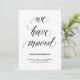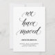 Ces cartes postales élégantes et simples de changement d'adresse présentent une calligraphie noire moderne sur un arrière - plan blanc. Une façon élégante de faire savoir à tout le monde que vous avez déménagé.