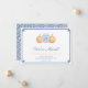 Conception intemporelle bleue et blanche (avec une touche d'orange automnal) avec mon pot en céramique jarre au gingembre aquarelle et des illustrations de citrouille. Ceux-ci ont été peints à la main par moi avant d'être numérisés. Cela est complété par une bordure "Greek Key". J'ai configuré le modèle pour un changement d'adresse, mais tous les champs de texte sont personnalisables selon vos besoins. Vous pouvez déplacer, supprimer ou ajouter des champs de texte en entrant dans l'outil de conception. Vous pouvez également changer la couleur de contraste de la bordure Greek Key sur le devant et le motif au dos (représenté ici par un bleu foncé) à n'importe quelle couleur que vous aimez en entrant dans l'outil de conception (sous la zone de personnalisation du texte, cliquez sur "personnaliser davantage"), puis en changeant la couleur de fond