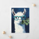 Tourner vers l'art animal et l'humour mignon avec un llama blanc excentrique balancer des lunettes turquoises et tenir une branche feuillue.