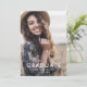 Ce message chic violet et la carte de faire-part de diplôme de collage photo est la parfaite simple faire-part de diplôme d'études secondaires ou collégiales. Le design simple présente une typographie classique violet prune foncée et blanche avec une atmosphère boho rustique. Personnalisable dans n'importe quelle couleur. Personnalisez l'avant de la carte avec une photo, le nom de vos diplômés et l'année. Ajoutez 3 photos supplémentaires et un message faire-part plus long au dos de la carte.