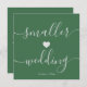 Il s'agit d'un simple chasseur vert et gris script Petite carte Mariage pour informer vos invités que vous avez décidé de réduire votre mariage, avoir un mariage plus petit, micro mariage, mariage intime en raison de certaines circonstances.