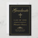 Envoyez à votre famille et à vos amis une élégante faire-part de graduation chrétienne avec un arrière - plan noir avec de la calligraphie en faux or et traversez bordé par une mince ossature en or. Personnalisez avec vos détails de graduation. Conçu par Susan Coffey.
