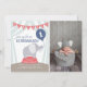 Invitation de fête pour bébé et anniversaire de enfant avec photo. Personnalisez l'âge du garçon ou de la fille d'anniversaire sur le ballon que tient notre super mignon éléphant. Idéal pour les soirées anniversaires de enfants à thème cirque ou carnaval.